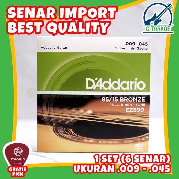 Senar Gitar Akustik DAdario Strings Best Quality Import - Free Pick - EZ890 (.009)
