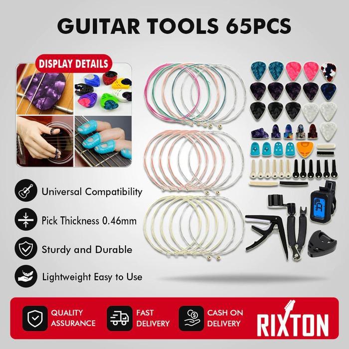 Rixton Alat Gitar Mengubah Kit 65 Pcs Strings Pick Capo Winder & Cutter Tuner Aksesoris String Kit - 65pcs