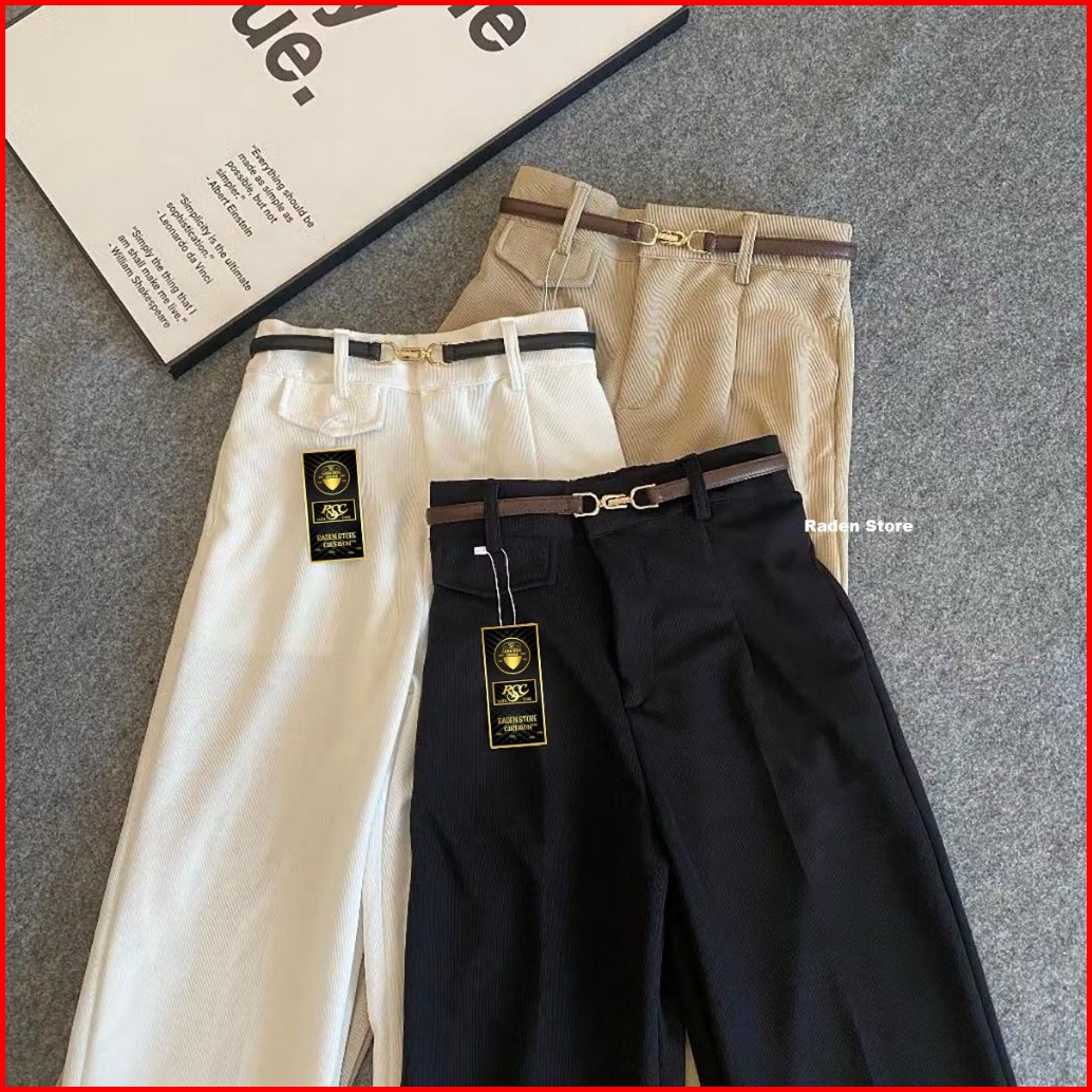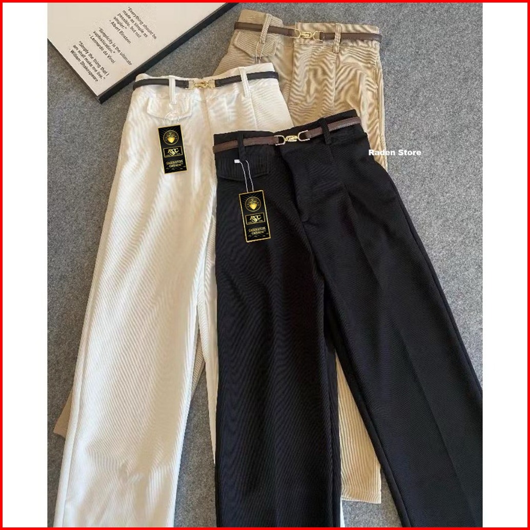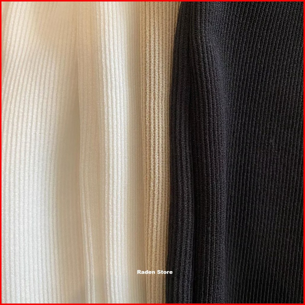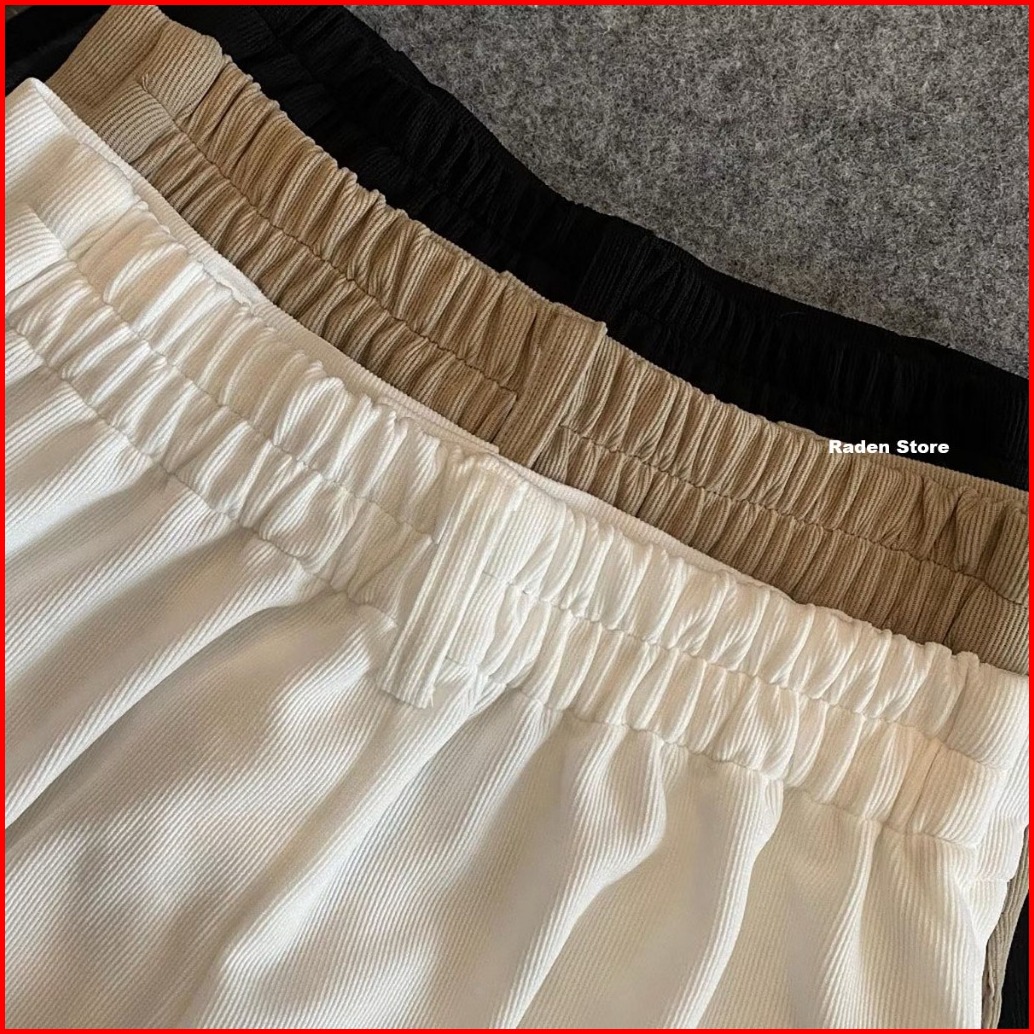 Raden Oro Pants Knit Highwaist Cullote Pants - Hitam Ivory Celana Panjang Wanita
