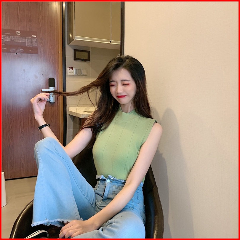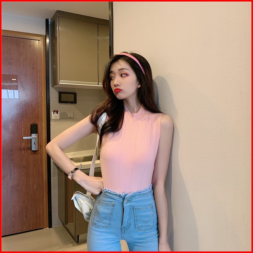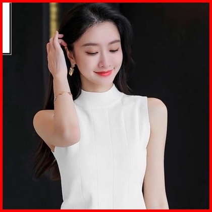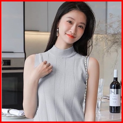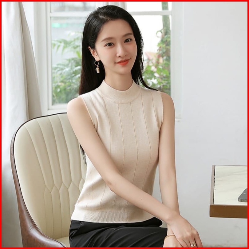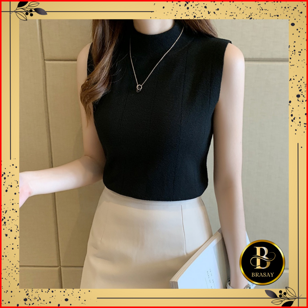 Brasay Turtleneck Wanita Tanktop Rajut Tengtop Tank Top Blouse Korean Lalisa Style 4066