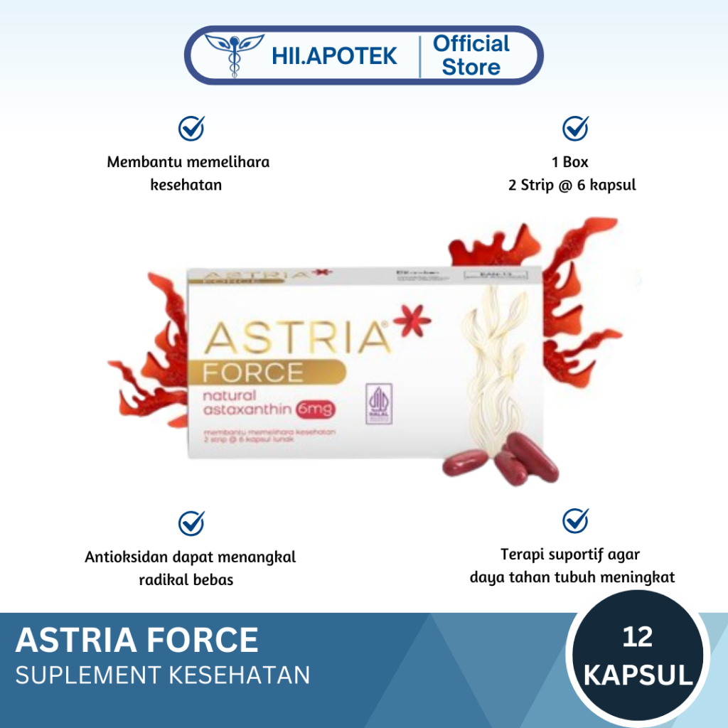 Astaxanthin Astria Force 6mg Suplemen Kesehatan 12 Kapsul