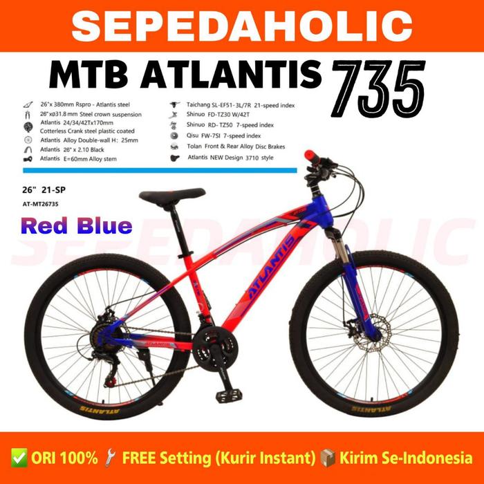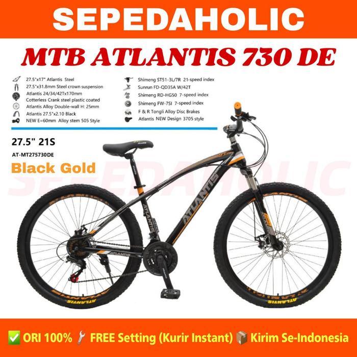 [Star]Sepeda Gunung MTB ATLANTIS DISCBRAKE Ukuran 24 26 27.5 Inch Rem Cakram - Black Red, 24 Inch