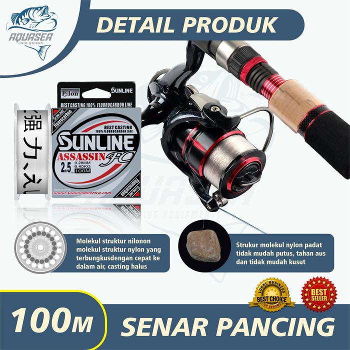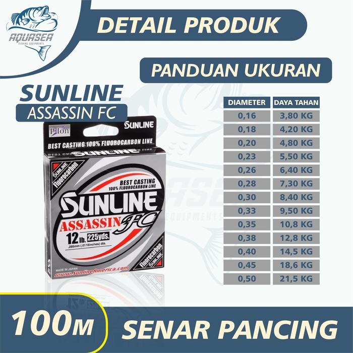 Tali Pancing Sunline Asassin Fluorocarbon 100m Alat Ikan Joran Umpan