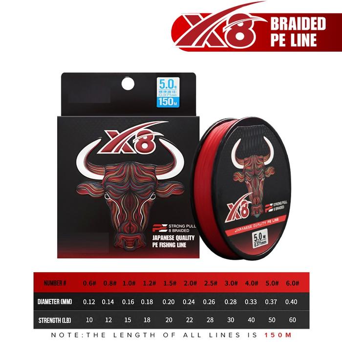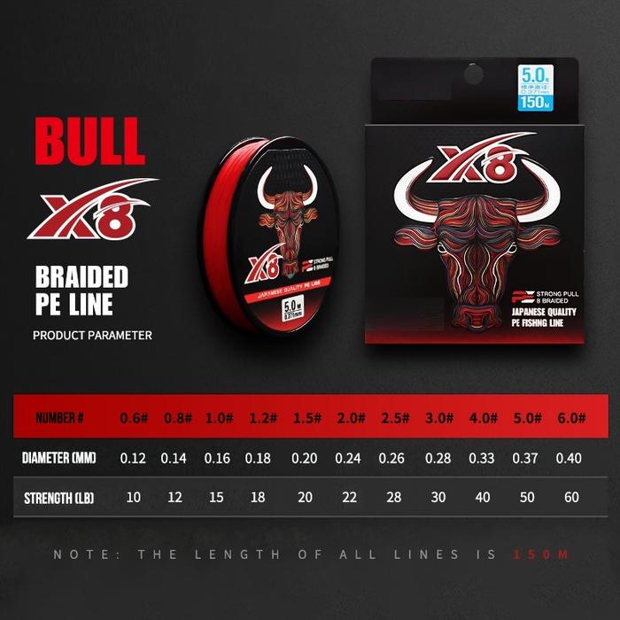 [Beli 1 Gratis 1]Bu'll Pro x8 Braided Fishing Lines (150M/10-60LB) + Set 10 soft lure+Kotak Umpan Gratis+2 Kail Lengkung