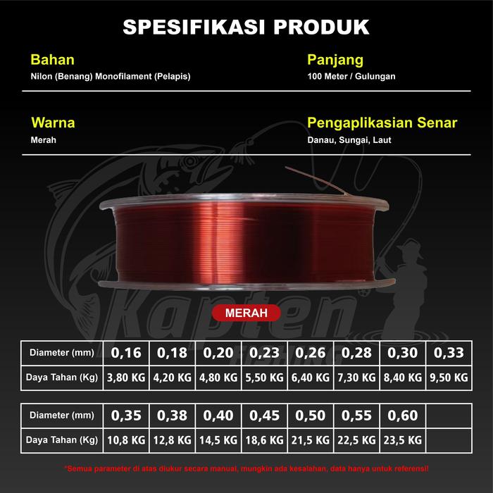 Senar Pancing Kaptenfishing Gaojian 100m Nilon Tahan Getaran Halus - Ikan