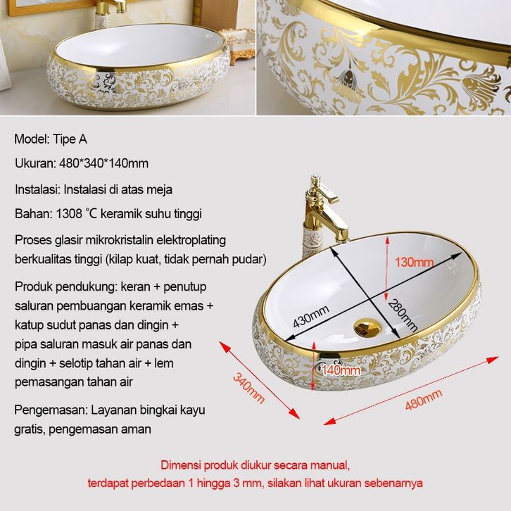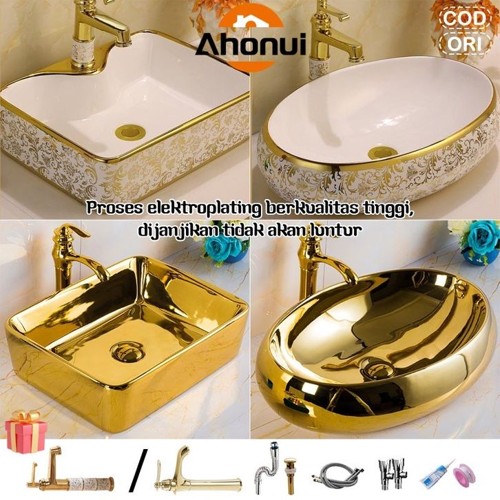 ❤️3 TAHUN +All Aksesoris❤️Emas Wastafel Meja Kamar Mandi Eropa Mewah Klasik Emas Putih Emas