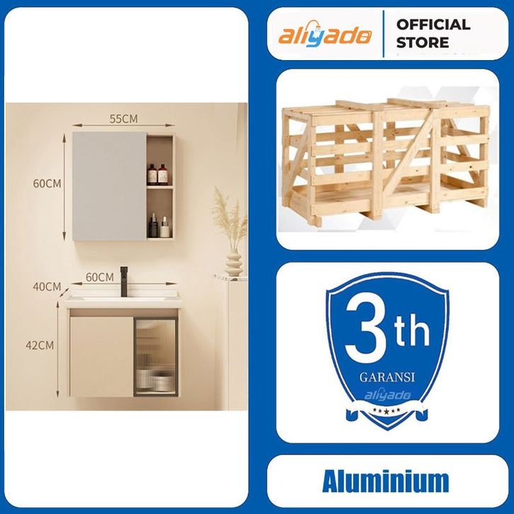 Perpanjangan 3 Tahun -60/40CM Lemari Kamar Mandi Wastafel Keramik Kombinasi Kabinet Wastafel