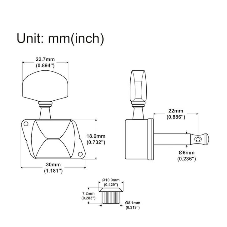 PLAYOU 6pcs gitar string tuning pasak logam gitar semi-tertutup tombol tuner mesin tuner untuk gitar