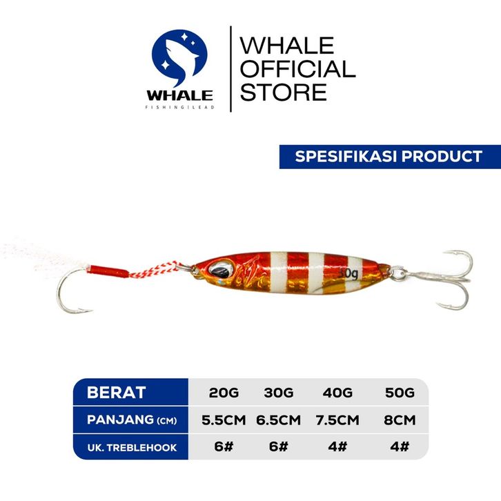 WHALE Baru Umpan Pancing Jigging Hook Memancing Spinner Umpan 20g/30g/40g/50g Laser Metal Jig Spoon