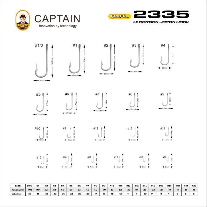 Hook/ Kail Pancing - Captain 2335, Round Bent Sea, KAIL DENGAN LUBANG, Ukuran 8-20, isi 100pcs
