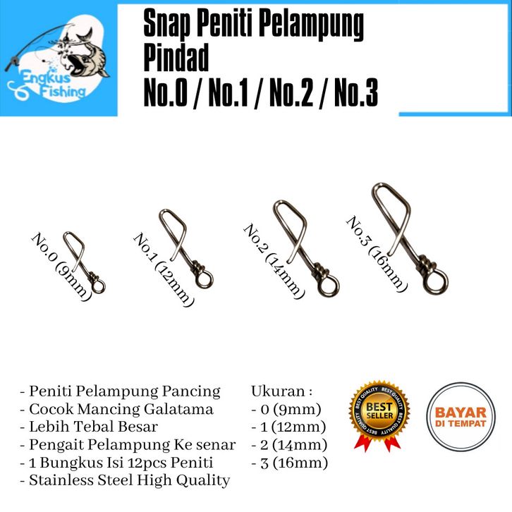 Snap Peniti Pancing PINDAD Perbungkus Pelampung Stainless Steel Murah - Engkus Fishing