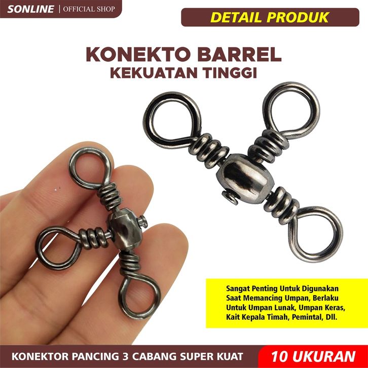 SONLINE KiliKili Barrel Swivel 3 Mata 3 Way Swivel Rangkaian Pancing Solid Ring Brass 3 Way Barrel