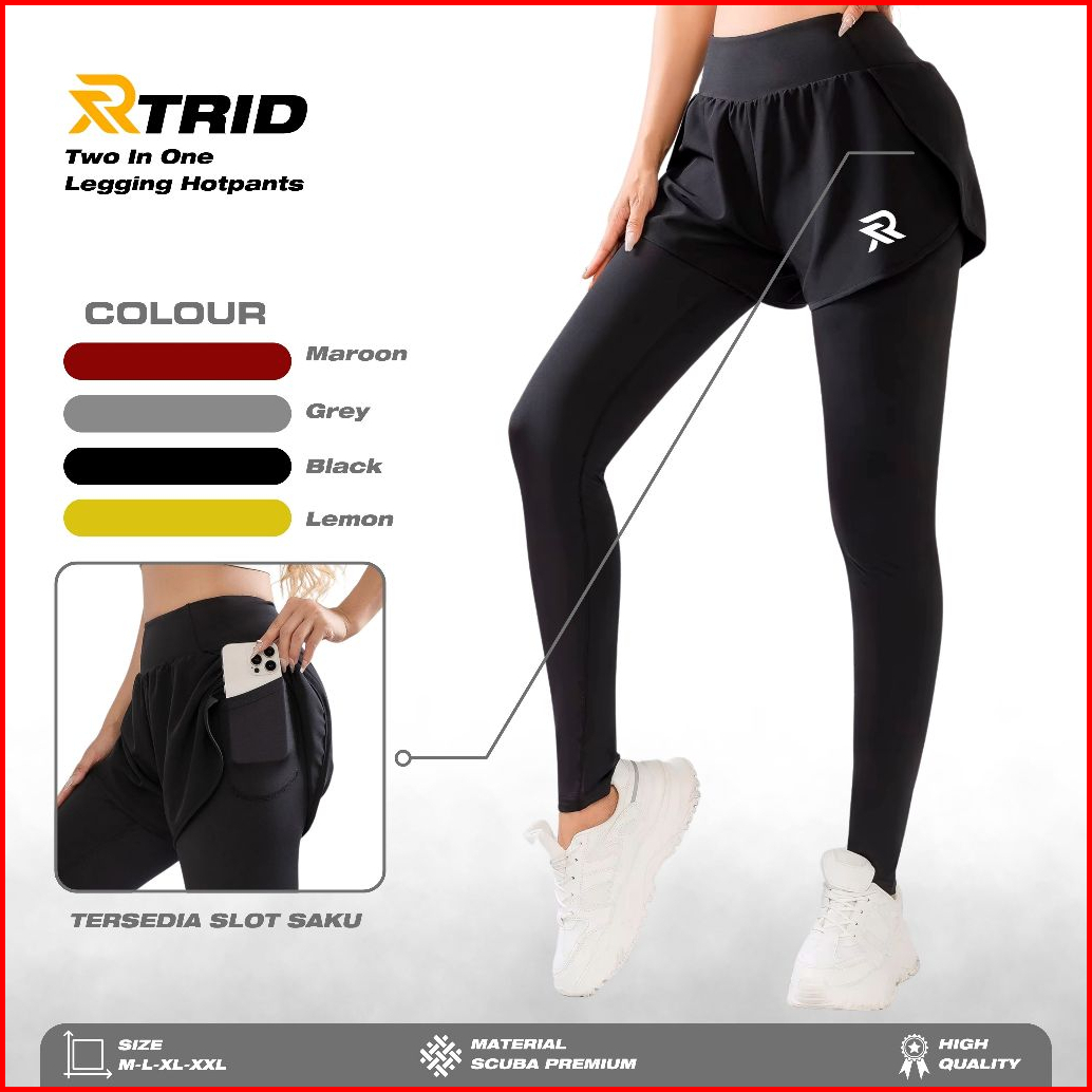 Thereal.id - 2 In 1 Legging Hotpants Olahraga Wanita Gym Outdoor Bahan 100 Scuba Premium