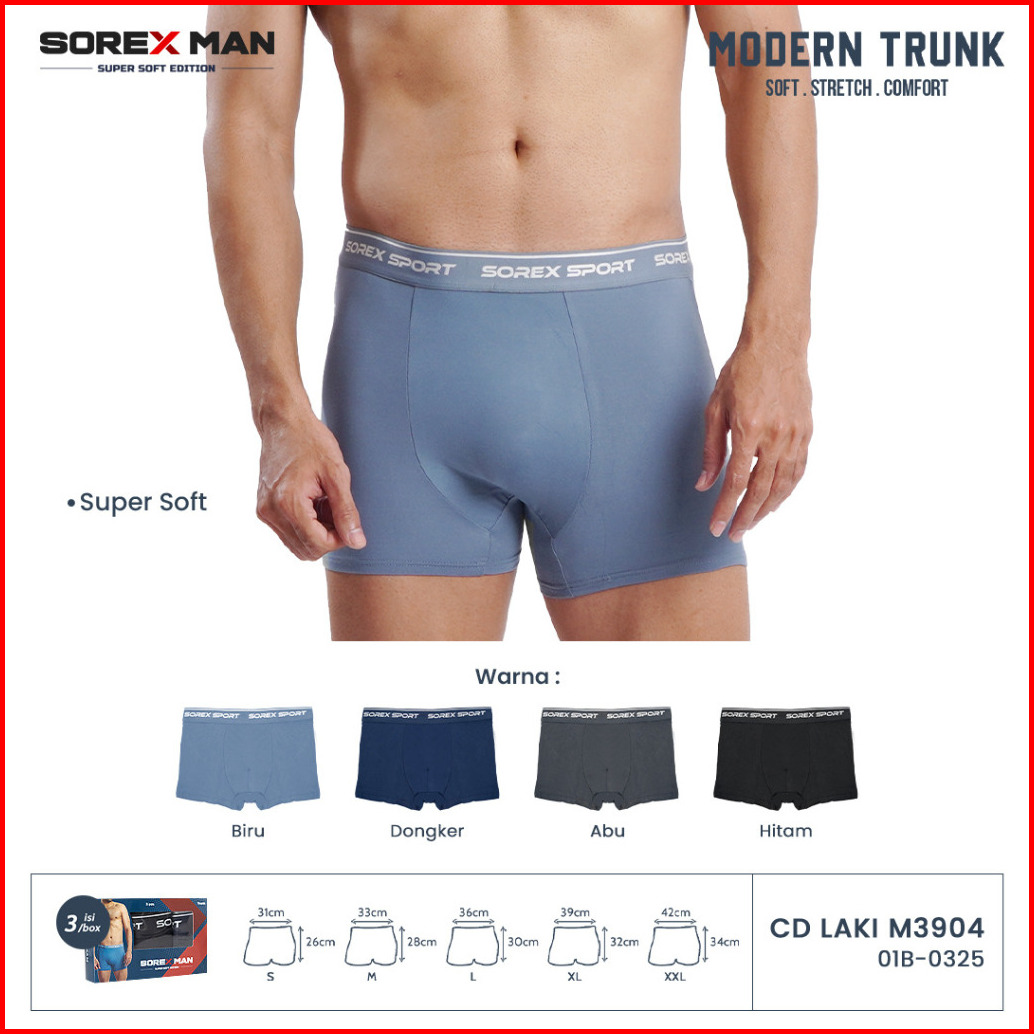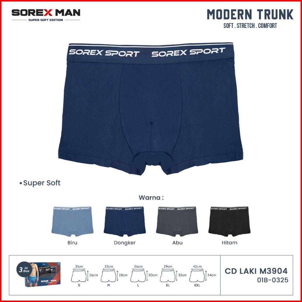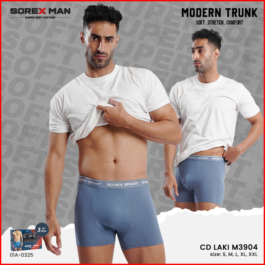3 Pcs Sorex Man Boxer Pria Sport Trunk Super Soft Celana Dalam Cowo Lk M 3904