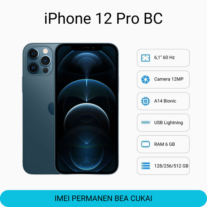 Iphone 12 Pro Bc Bea Cukai Imei Terdaftar Sinyal Permanen All Operator 128/256/512 Gb Garansi Toko Ibox Reseller Store