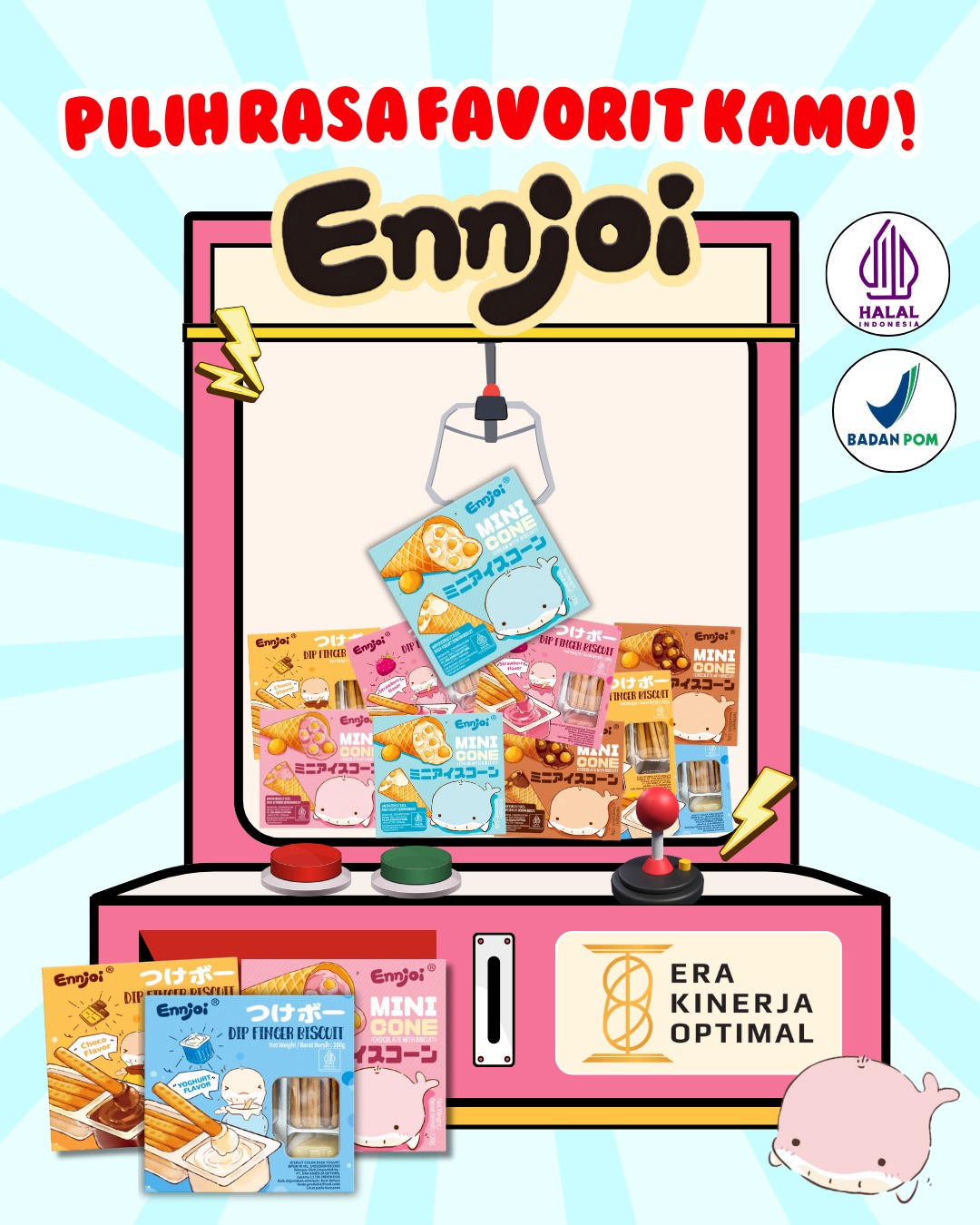 Snack Bakery Guangdong Ennjoi Co. Ltd Biscuit Dip Finger 180 Gr, Mini Cone 120 Gr Varian Yoghurt, Strawberry, Chocolate