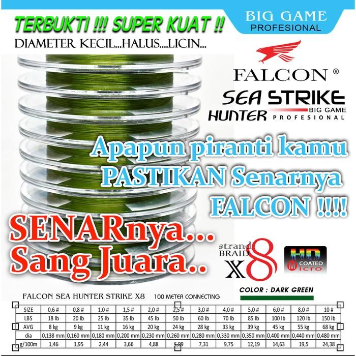 Senar pancing PE X8 Falcon SEA Hunter STRIKE 300M PAKET 3 ROLL
