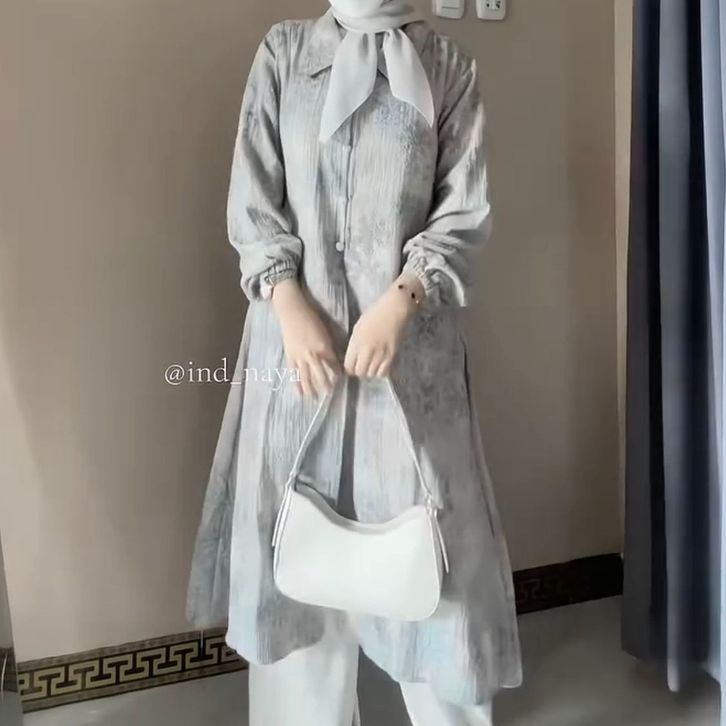 OUTER TUNIK MOTIF BATIK MODERN KANCING BUSUI DAN WUDHU FRIENDLY MATERIAL FOAM EMBOSS PREMIUM MUSLIM