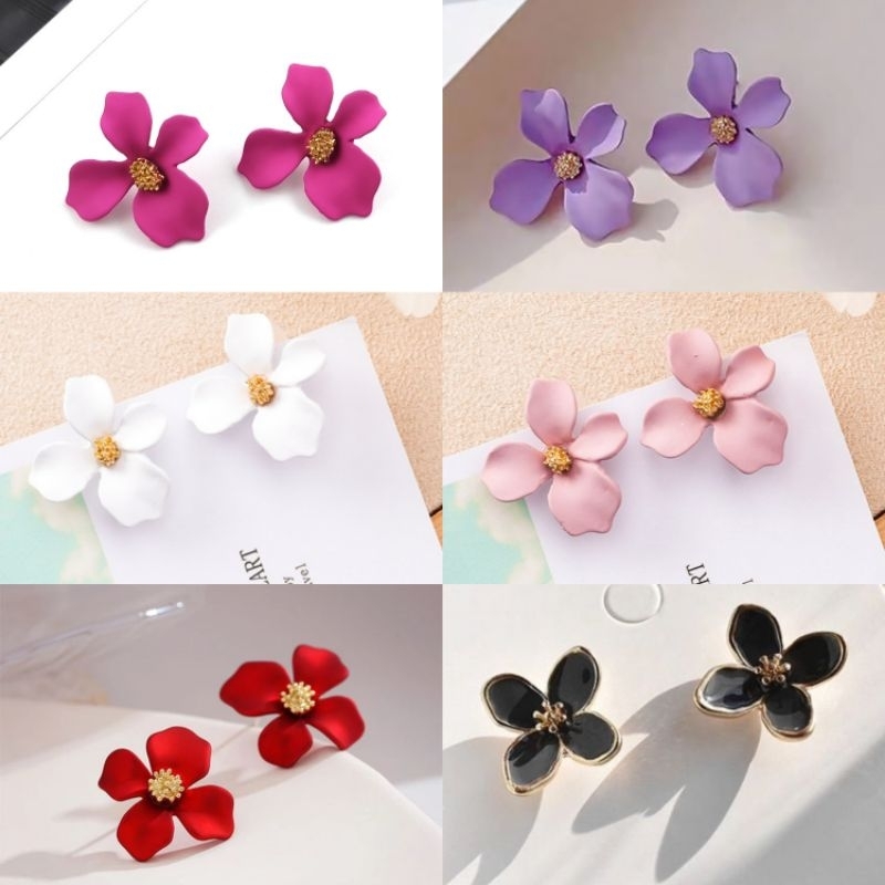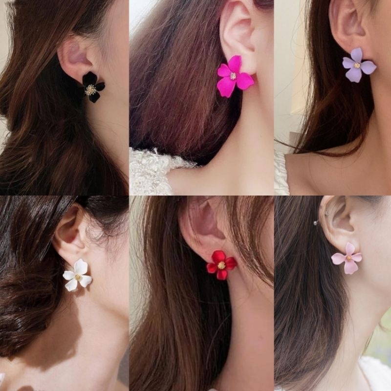 Anting Bunga Putih, Anting Bunga Hitam, Anting Bunga Fusia, Anting Bunga Ungu, Anting Bunga Merah, Anting Bunga Nude