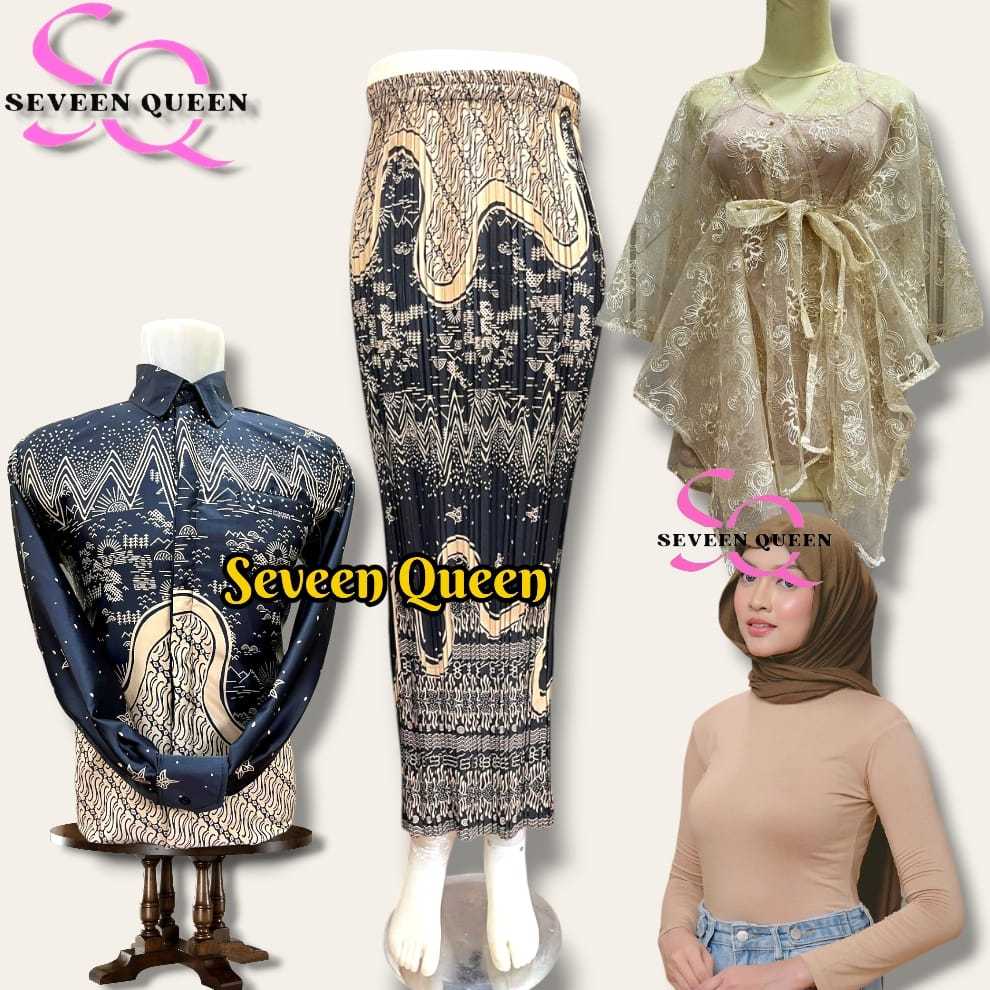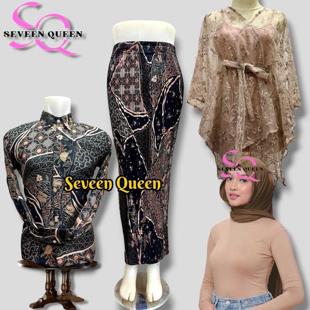 Baju Batik Couple Pasangan Kemeja Batik Couple Outer Kebaya Dan Rok Plisket Batik Plus Manset