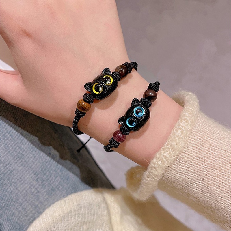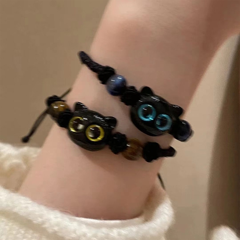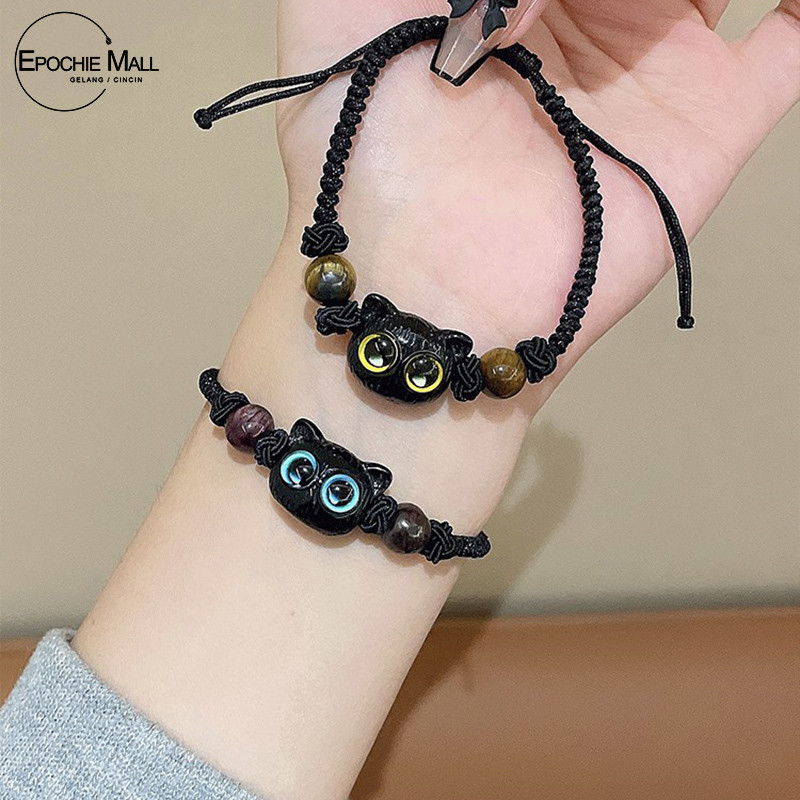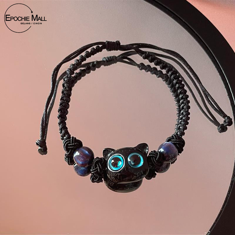 Gelang Tali Wanita Berkualitas Gelang Kucing Dapat Ditarik / Yellow Blue Eye Cat Beads Bracelet Original-EP