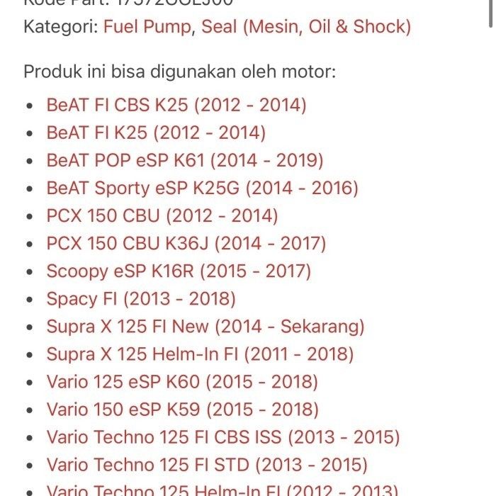 Oring full pump beat f1 17572-GGL-J00 AHM ORI