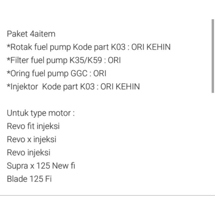 Paket 4aitem rotak K03+Filter fuel pump K35+Oring GGC+Injektor K03 Revo fit injeksi Revo x injeksi