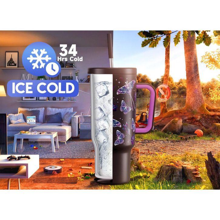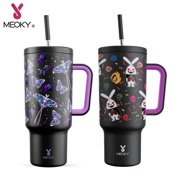 MEOKY 40oz (1180ml) termos berkapasitas besar bercahaya termos tahan lama anti bocor dengan pegangan dan sedotan