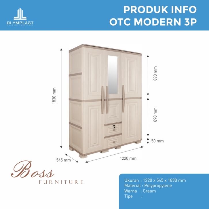 Lemari Pakaian Plastik Olymplast Serbaguna OTC 3P Tiga Pintu M0DEern Minimalis Kokoh