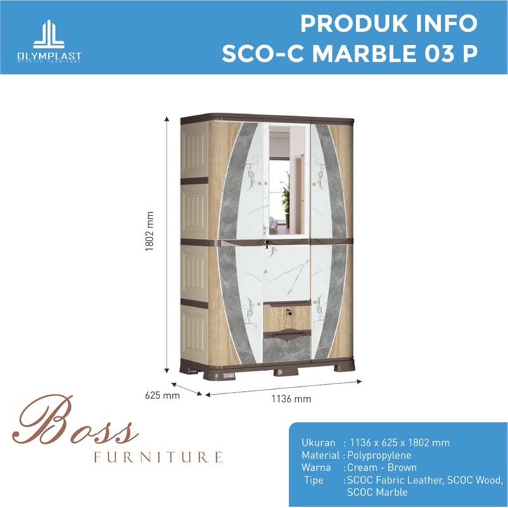 Lemari Pakaian Plastik OLYMPLAST SCOC 3 Pintu NEW MOTIF