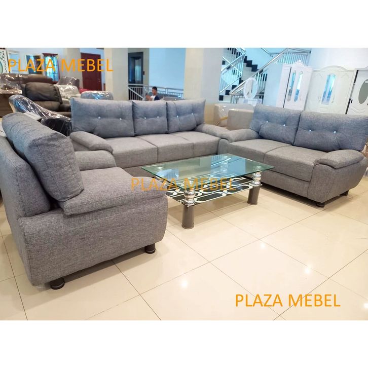 SET Sofa Kursi Tamu Capella 321 Abu Kain Bantalan Tanpa Meja MEWAH