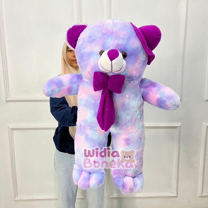 BONEKA TEDY BEAR XL RAINBOW TOPI PITA