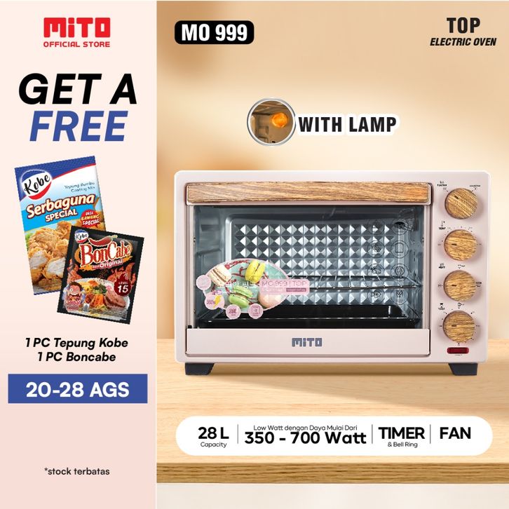 MITO Electric Oven MO999 TOP WOOD SERIES 28L Original Pink Pemanggang Kue dan Makanan
