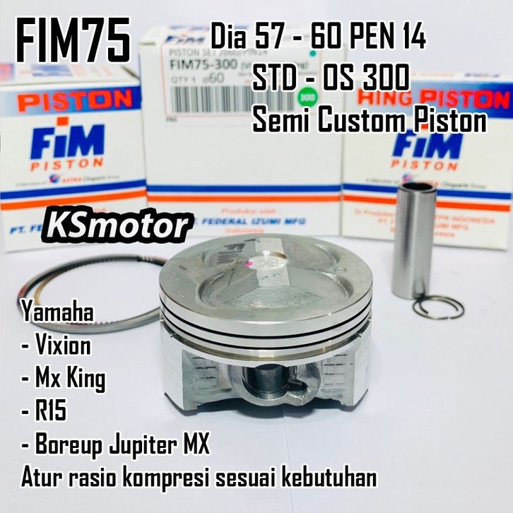 PISTON SEHER SET FIM75 VIXION MX KING R15 DOME 57 57,5 58 58,5 59 59,5 60 Pin Pen 14 FIM
