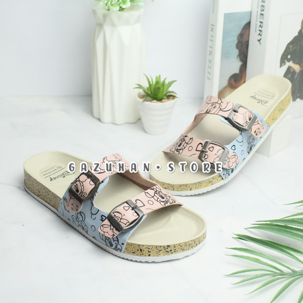 Sandal Wanita Kekinian Slop Disney Terbaru Sendal Flat Cewek Lucu Hak Rendah 2 Cm Size 36 Sampai 41