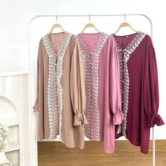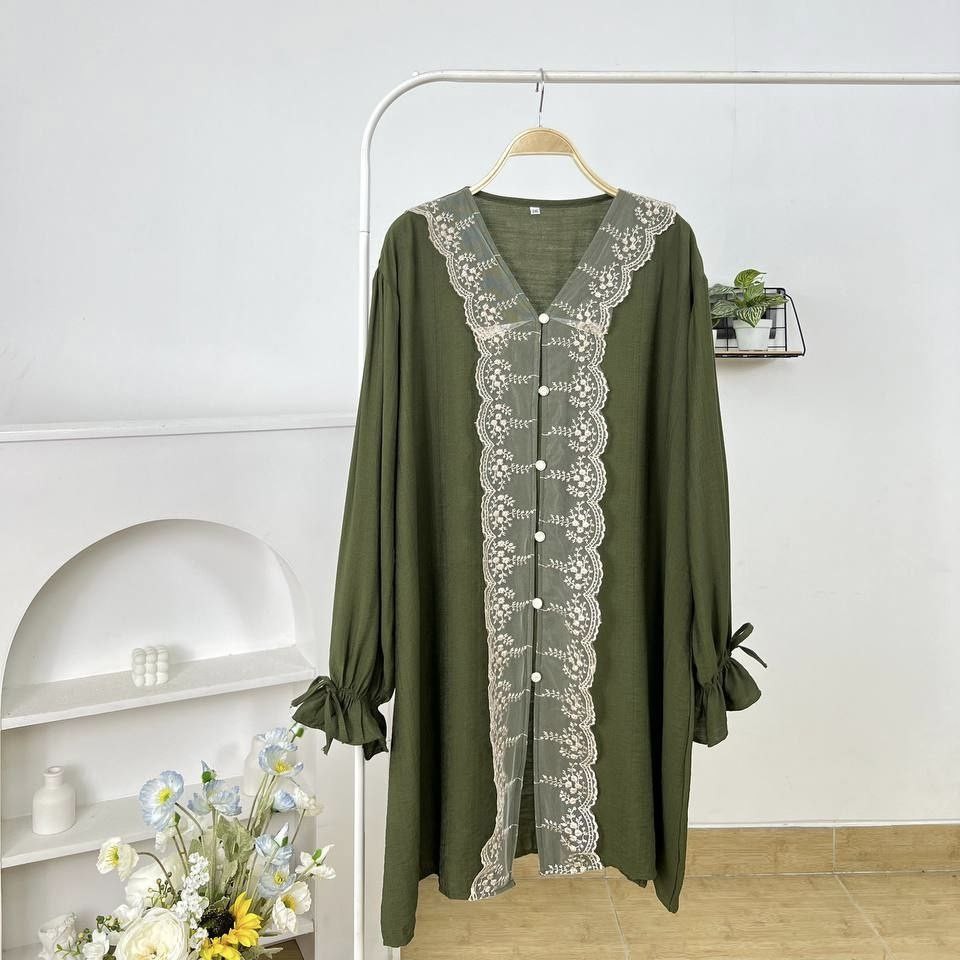 Akavi - Quita Tunik Lace Linen Super Jumbo Tunik Bigsize Atasan Oversize Ld 120 130 140 150 (334Gr)