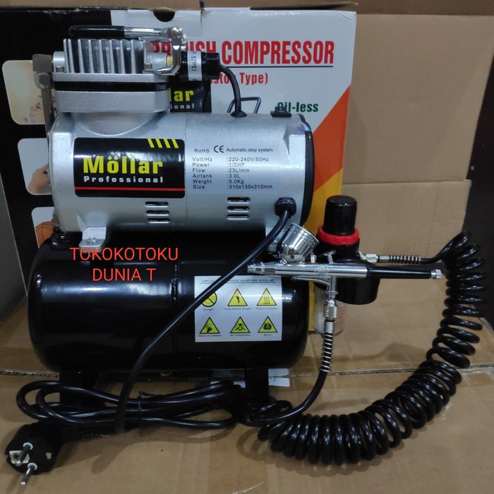 Paket Kompresor Mini Compressor Set Mollar 3 Liter With Pen Air Brush