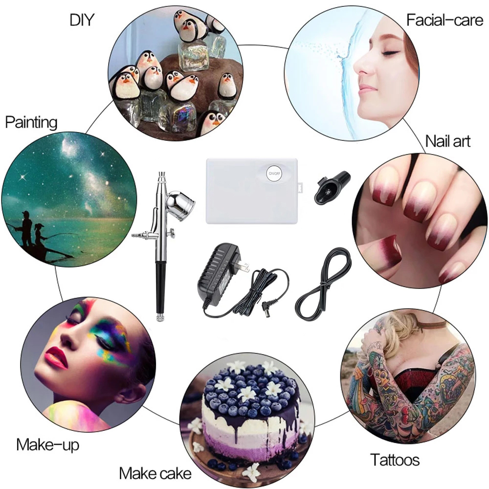 Mini Dual Airbrush Mini Air Compressor Set Gravity Feed Air Brush Kit