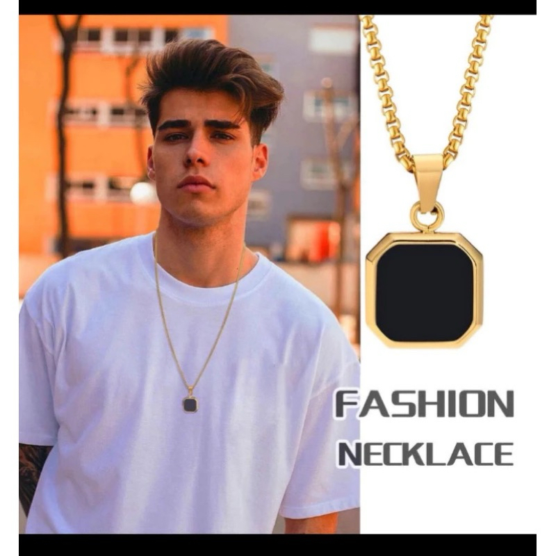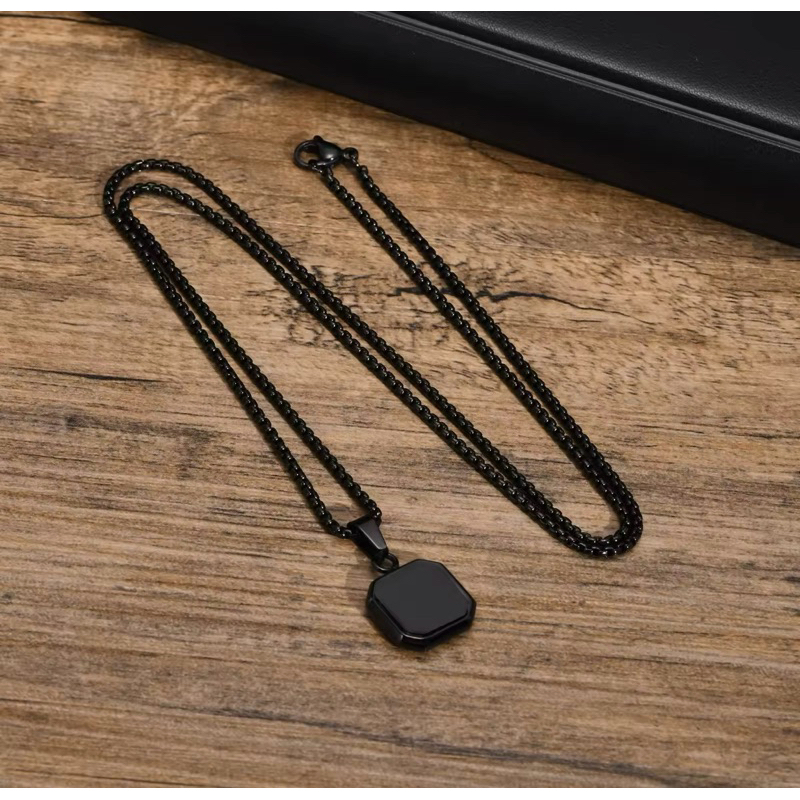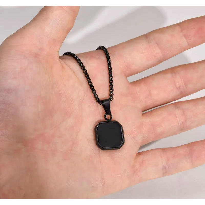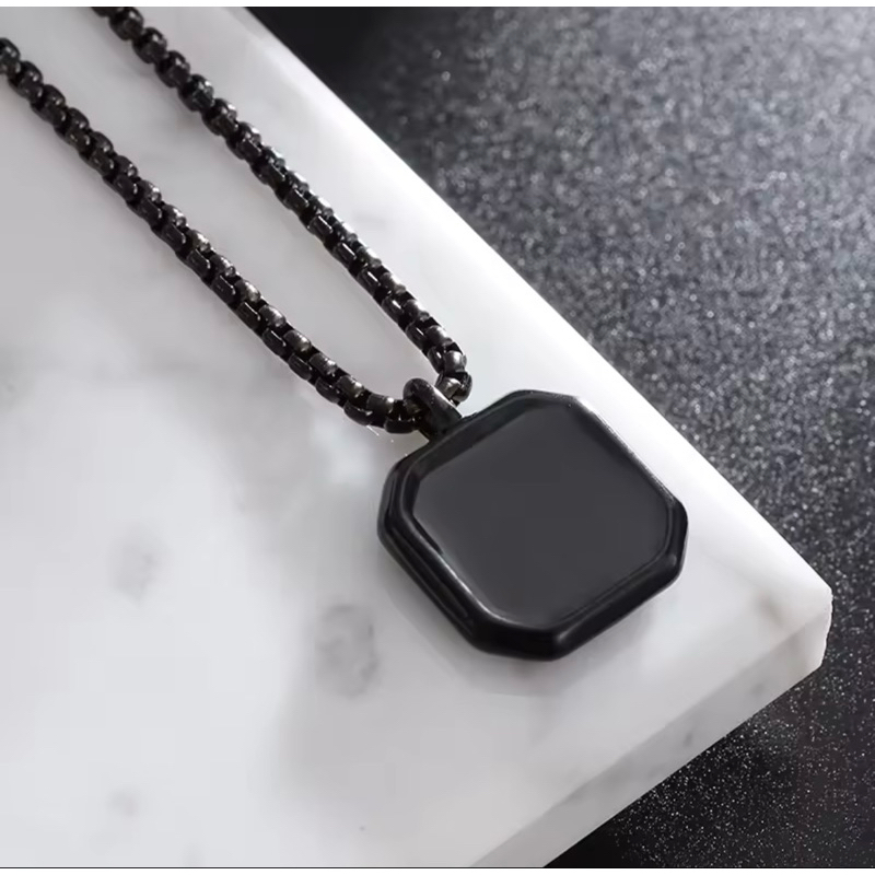 KALUNG PERSEGI GEOMETRIS BARU UNTUK PRIA KALUNG LIONTIN PERSEGI BATU ALAM HITAM PUNK