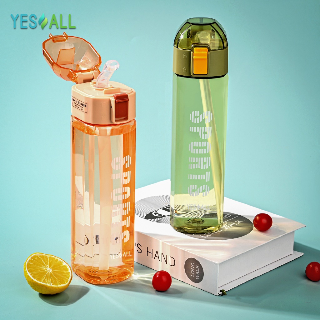 YESALL 650ml Botol Minum Transparan - Tutup Flip Thumbler Warna Transparan Infuse Water Bottle Infuser Olahraga SH004