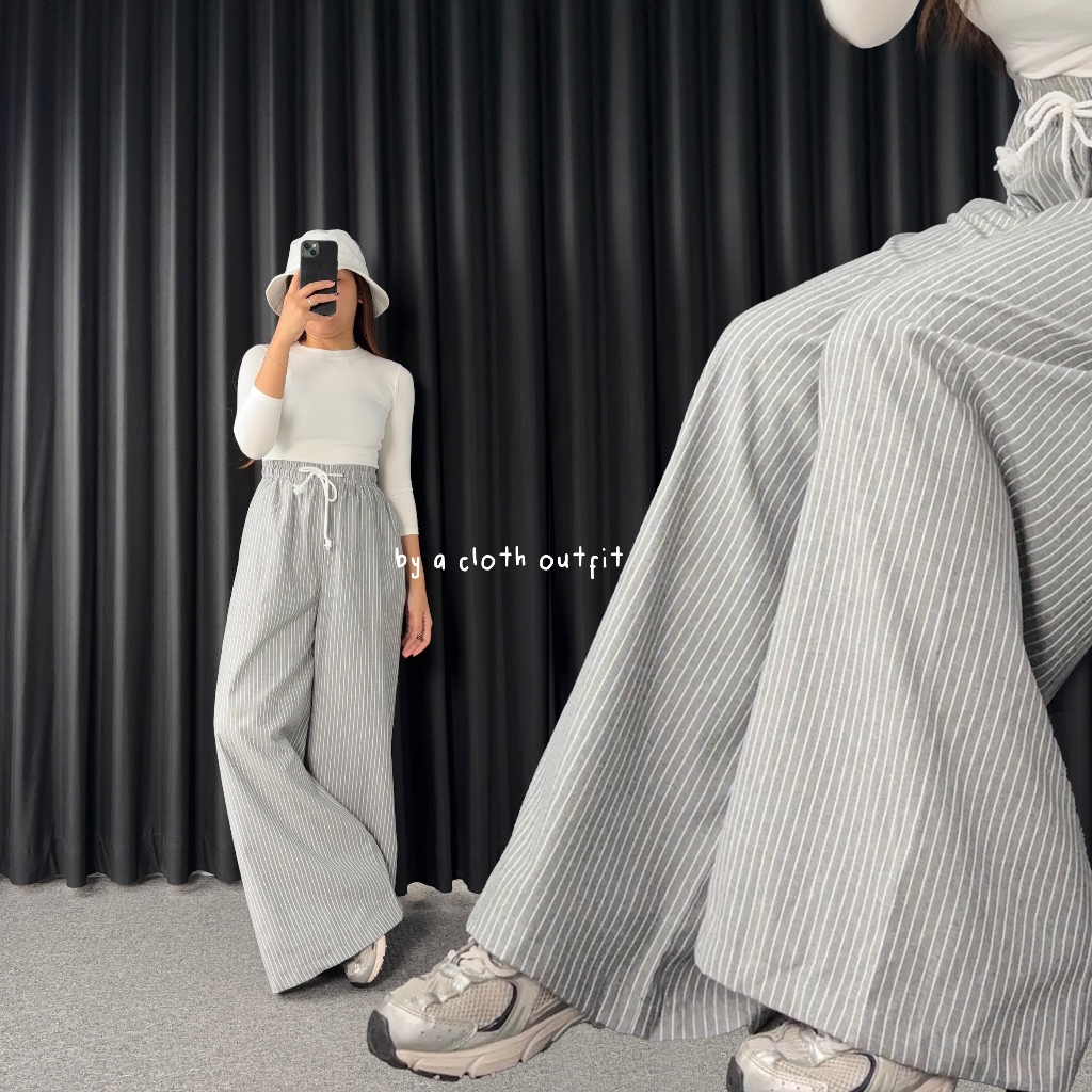 Byacloth - Everyday Pants Cotton - Celana Panjang Wanita Baggy Kantor Kuliah Motif Garis Kulot Pinstripe