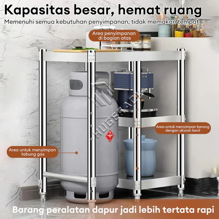 Meja Kompor Stainless Meja Kompor 2 Tungku Full Besi Meja Kompor Gas 2 Tungku Rak Kompor Rak Dapur Serbaguna