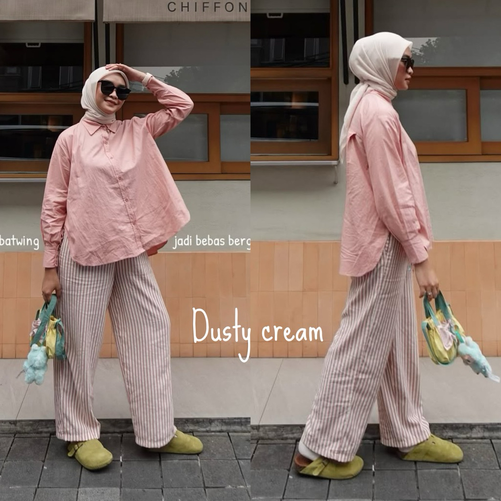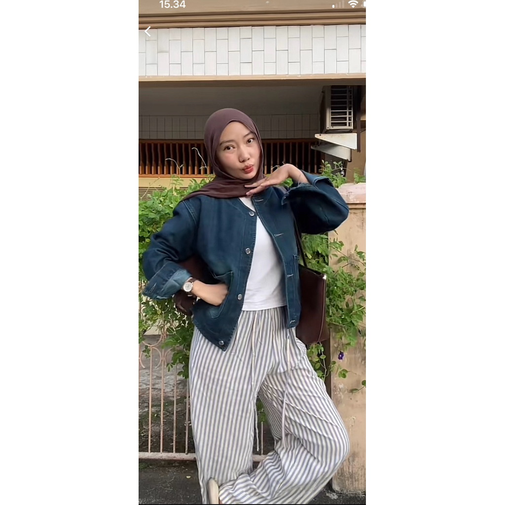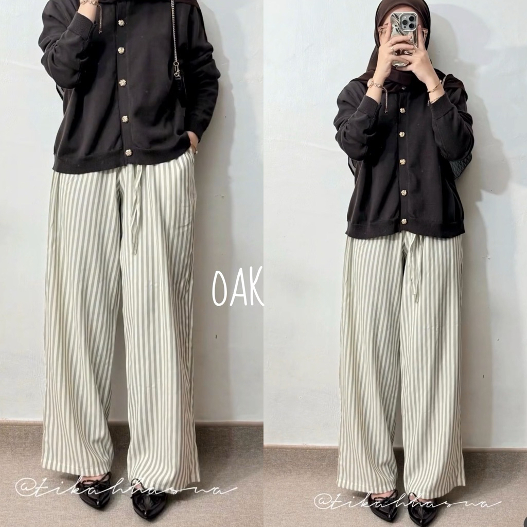 Trippy Pants Celana Wanita Casual Katun Linen Stripes Kulot