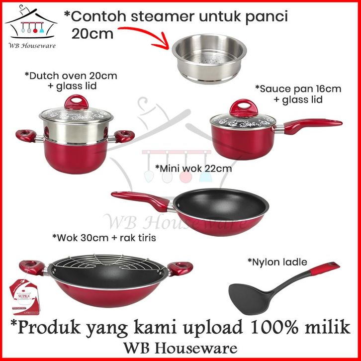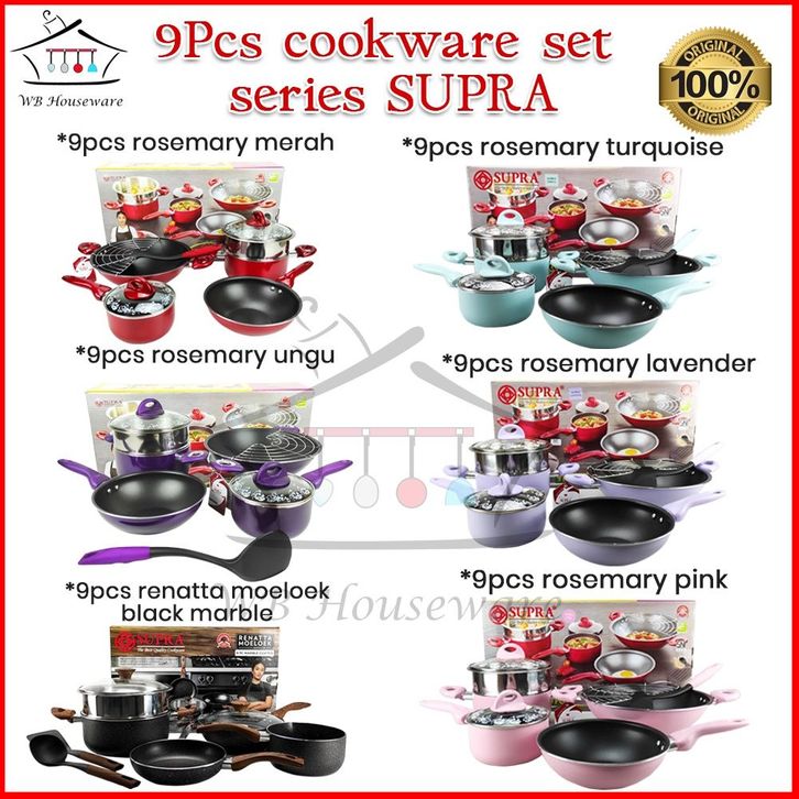 Panci set / Panci Set 9pcs Supra / Cookware set 9 piece Supra Rosemary / 100% original - merah