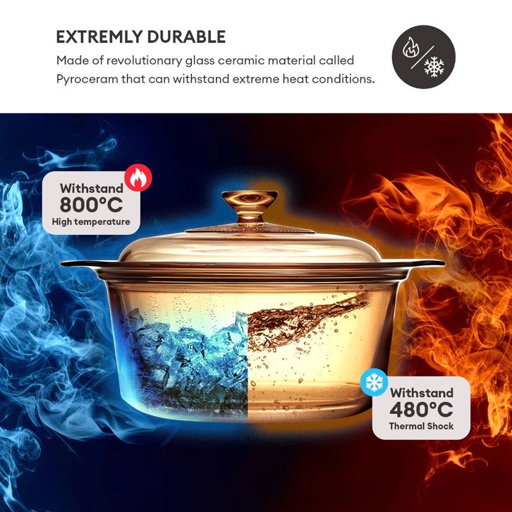 Visions Vitroflam Casserole / Panci Kaca Tempered Glass