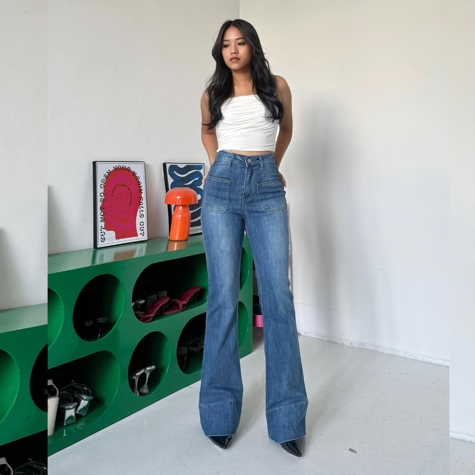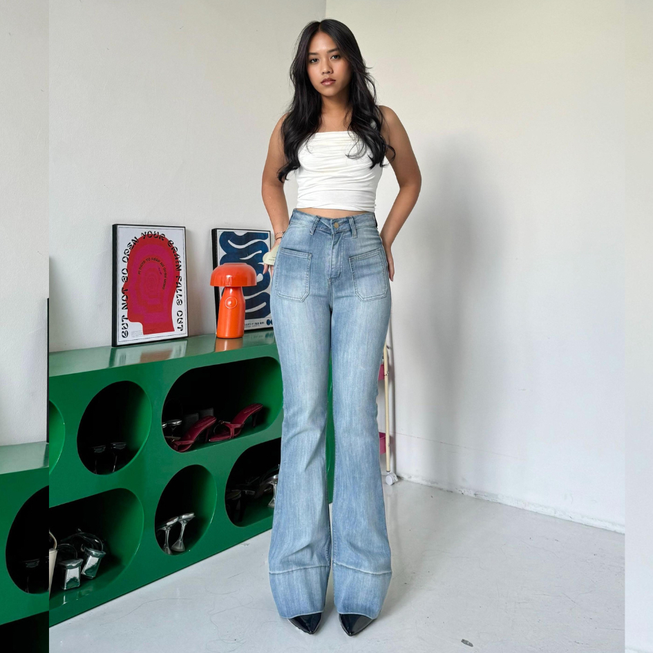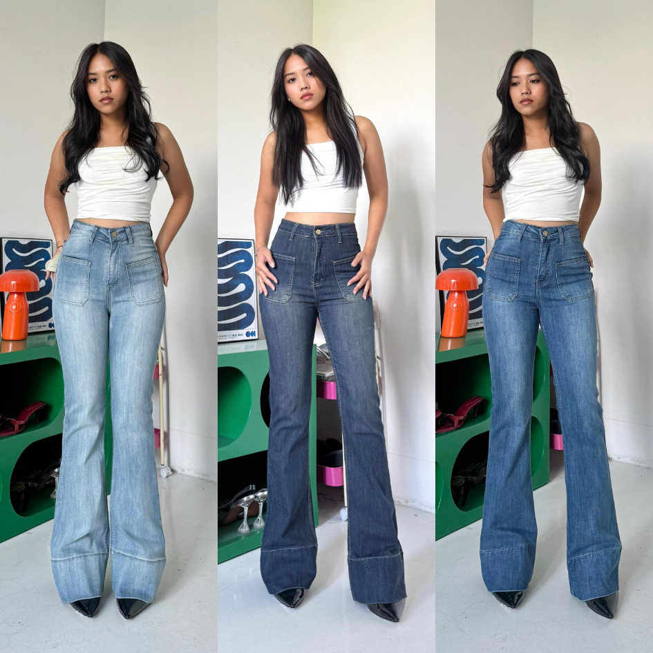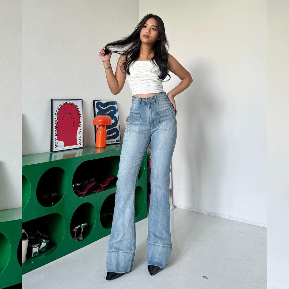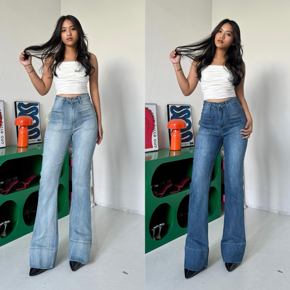 LADOUCE - Kelly High Waist Cutbray Jeans Celana Stretch Flare Panjang Wanita