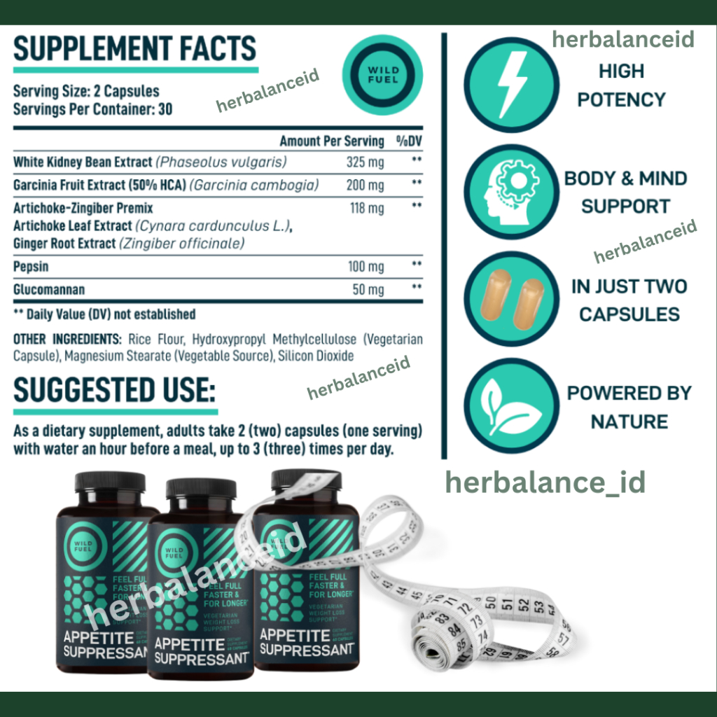 SUPLEMEN DIET APPETITE SUPPRESANT PENGONTROL NAFSU MAKAN EFEKTIF ORI USA WILD FUEL PIL PENAHAN LAPAR Garcinia Cambogia,