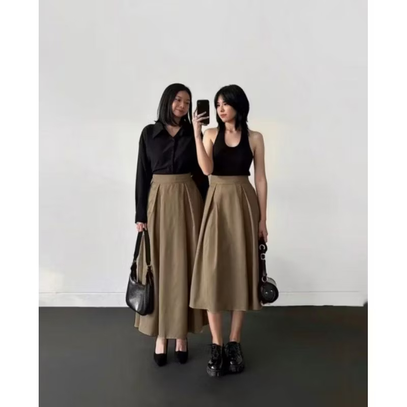 Lunar Flare Skirt - Rok Wanita Cotton Twil Korean Skirt Style - Rok Terbaru