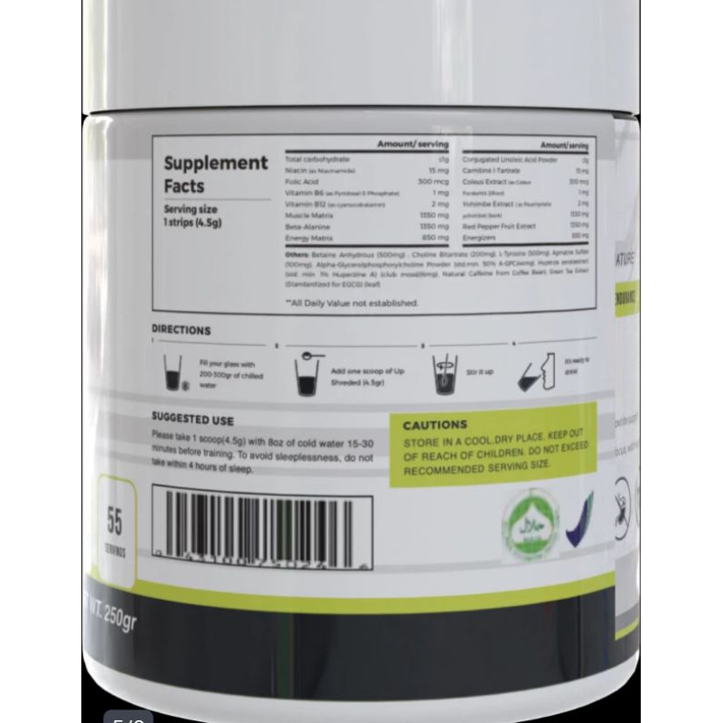 UP Nutrition UP SHREDED 55 servings - 250gr Preworkout Fat Burner Shredded