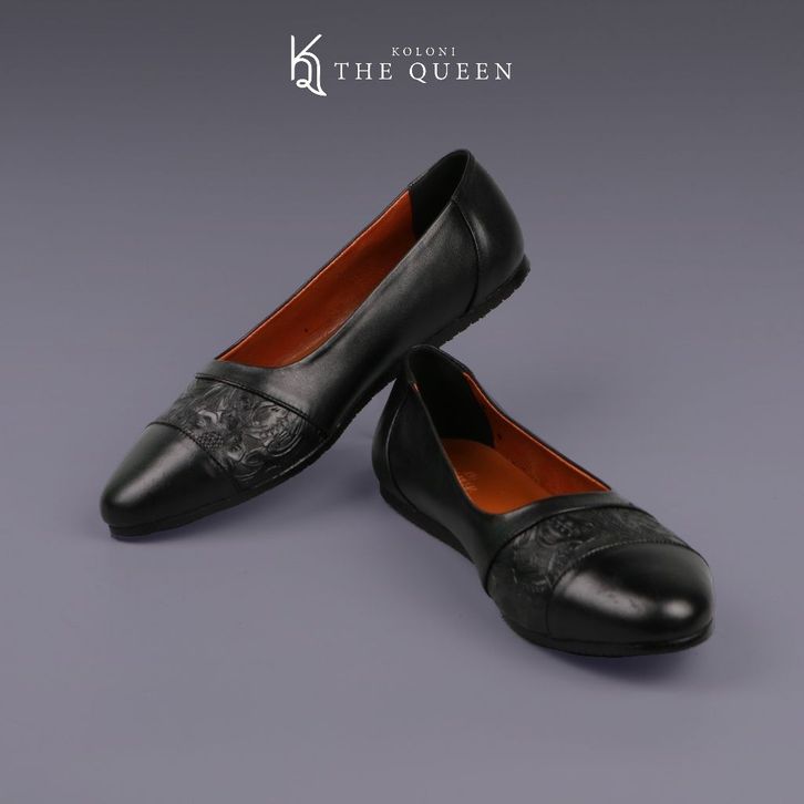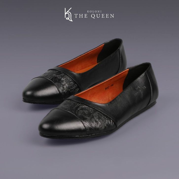 KQ Indonesia Sepatu Flatshoes Wanita K-802 Original Kulit Asli - Black